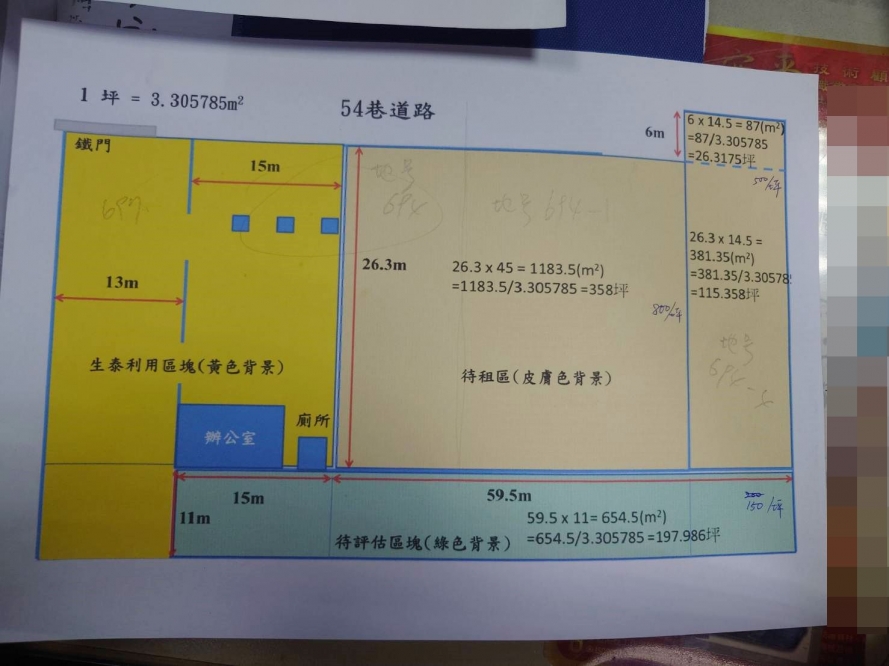 1.目前區分辦公室.廠房.生產車間區.廁所.電房